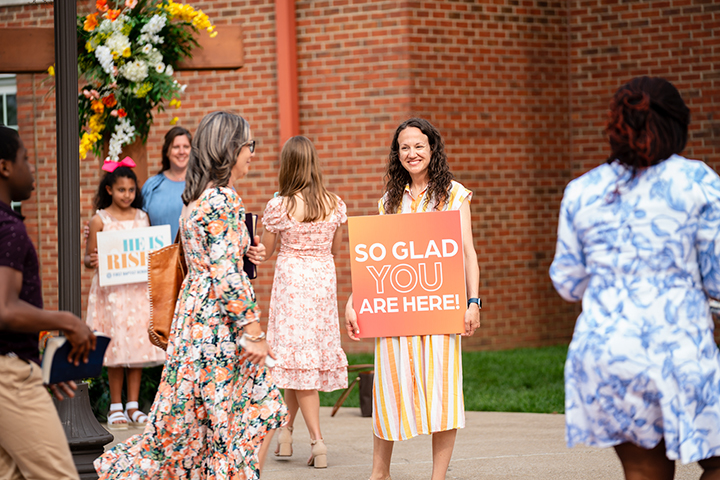 Checking out First Baptist for the first time? Our team would love to meet you! Stop by the Welcome Desk in the front lobby or the tent on the front lawn to meet the Pastors. Visit the “Start Here” page to learn more about what FBCHville has to offer!