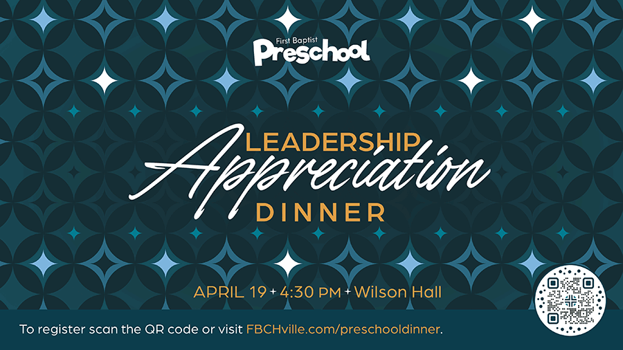 Enjoy a special dinner and entertainment by David and Kylie Knight for Preschool Ministry Kid-Connect leaders, Kid-Venture volunteer leaders, and their families. Childcare for preschool-aged children is provided.